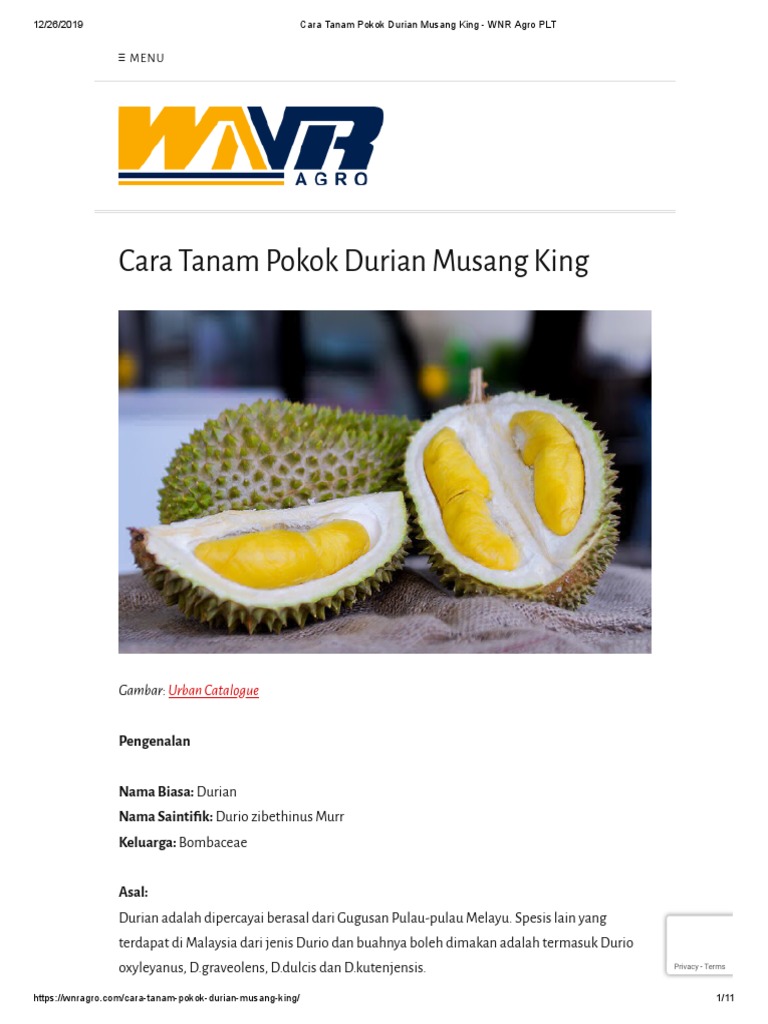 Cara Tanam Pokok Durian Musang King Wnr Agro Plt Pdf